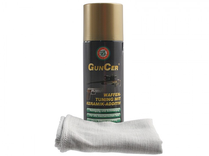 GunCer Einfuehrungs-Set besteht aus dem 200ml Spray und einem gratis Reinigungstuch.