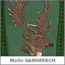Der Riemen basiert auf dem Model R1850 (Logo) hat jedoch die Stickerei: DAMHIRSCH! Andere Stickereien weiterer, toller Tiermotive finden Sie ebenfalls hier im Shop: Es sind die Motive Riserva-Logo (R1850), Bär (R1849), Sau (R1050), Gams (R1051), Rehbock (R1052), Elch (R1057), Hirsch (R1079), Fuchs (R1724), Mufflon (R1726) & Damhirsch (R1727) möglich.