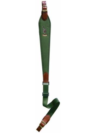 Professioneller, sehr hochwertig verarbeiteter Gewehrriemen von RISERVA aus Cordura Naturelle in grün. Die anti-rutsch-beschichtete Innenseite verhindert unkontrolliertes Abrutschen des Riemens von der Schulter, auch bei nassem Wetter. Der Riemen ist aufgrund seiner gut aufeinander abgestimmten Materialzusammenstellung geräuscharm, witterungs- & temperaturbeständig, farbecht und sehr pflegeleicht. Die Befestigungsriemen sind aus echtem Fettleder und durch Schnallen mehrfach verstellbar. Die Gesamt-Länge des Riemens kann über den stabilen Baumwollriemen stufenlos zwischen 85 und 110 cm eingestellt werden.