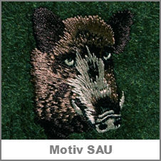 Andere Stickereien weiterer, toller Tiermotive finden Sie ebenfalls hier im Shop: Es sind die Motive Riserva-Logo (R1851), Bär (R1205), Sau (R1217), Gams (R1203), Rehbock (R1202), Elch (R1200), Hirsch (R1201), Fuchs (R1738), Mufflon (R1741) & Damhirsch (R1737) möglich.