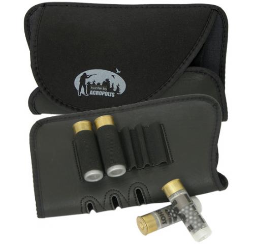 Besonders hochwertig verarbeitetes Hinterschaft-Patronenetui für Mehrkaliberwaffen mit 5 Aufnahmeschlaufen. Davon 2x Schrot- und 3x Multikaliberpatronen.