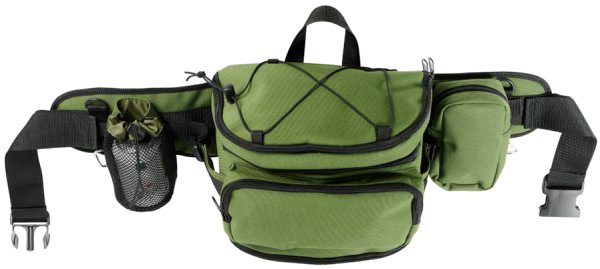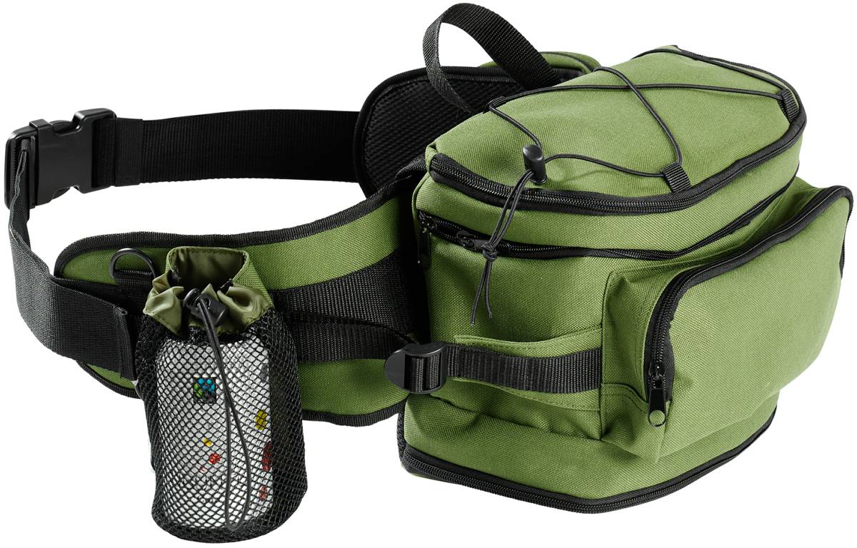 Sehr praktische und funktionelle Hüfttasche für alle Arten Outdoor-Aktivitäten, Wandern oder auf Reisen. Die Tasche ist aus starkem, glattem und wasserabweisendem 1000 D Nylon gefertigt. Der breite und bequeme Hüftgurt ist stufenlos verstellbar und wird mit einem stabilen Schnellverschluss verschlossen. Links neber der Rückentasche befindet sich eine Netztasche für eine Wasserflasche und rechts von der Haupttasche eine kleinere RV-Tasche für Utensilien wie zum Beispiel ein Handy oder eine Kompakt-Kamera. Die Haupttasche selber hat im Deckel ein Fach in dem eine Netz-Tasche aus Mesh mit Kordelstopper versteckt ist. Durch zwei verstellbare Träger, die am Gürtel befestigt werden können, kann die Netztasche dann auch schnell und einfach als Rucksack umfunktioniert werden. Das große Hauptfach hat noch eine kleinere, aufgesetzte Außentasche. Im Boden des Hauptfachs ist ein wärmeisolierendes und wasserabweisendes Sitzkissen in Signal-Orangener Farbe (Maße: 50,5 x 45 cm) untergebracht. Das Sitzpolster ist mit einem Klettverschluss an der Tasche befestigt, kann leicht entfernt und in einer Notfallsituation auch zur Signalisierung verwendet werden.