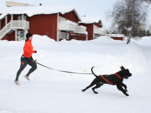 Befestigen Sie einfach Ihre Leine an diesem Hüftgurt um Ihre Hände frei zu bekommen. Der Expander, der in das Band eingearbeitet und integriert ist, kompensiert den ersten, heftigen Zugdruck und leitet diesen dann weiter auf die Hüfte... dadurch schützen Sie merklich Ihre Arme und Schultern.