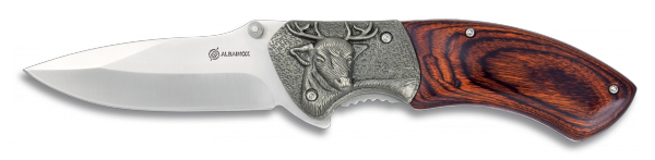 Handliches, sehr chickes Jagd- & Outdoor-Einhand-Klappmesser mit Stamina-Griff und toller Hirschkopfabbildung auf den Backen. Die Seitendruck-Arretierung an der Unterseite (wo normal der Zeigefinger ruht) lässt die Klinge im geöffneten Zustand sicher einrasten und verhindert ein irrtümliches Zuklappen des Messers und somit Verletzungen. Am Ende des Klingenrückens befindet sich eine "Warze", mit der die Klinge ganz einfach mit dem Daumen aufgedrückt werden kann. Das ideale Zweit- oder Taschenmesser für jeden Jäger und/oder eine tolle Geschenkidee.
