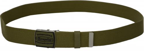 Äusserst strapazierfähiger Koppelgürtel mit grosser, breiter Metall-Klemmschnalle. Gurt aus reiner Baumwolle, 4 cm Breite und 133 cm lang.