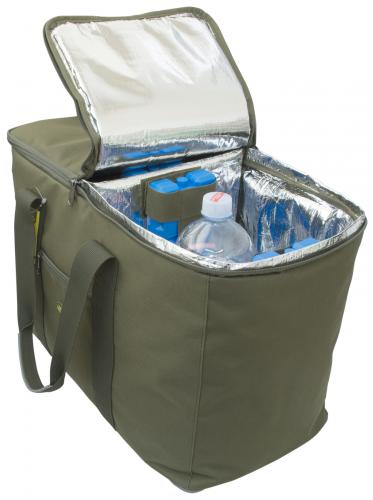 Diese hochfunktionelle Kühltasche ist gefertigt aus qualitativ hochwertigem, wasserdichtem Polyester D600 als Außenmaterial und ist im Inneren mit Lederpappe ausgeschlagen. Isoliert und gepolstert wird die Kühltasche mit hochisolierendem Polyethylenschaum, einem speziellen Wärmeschutz als Isolationsschicht und einer wasserdichten, aluminiumbeschichteten PVC-Folie im Innenraum. An der Außenseite ist eine kleine, zusätzliche Reißverschlusstasche aufgesetzt.