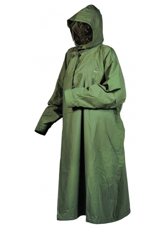 Dieser geräumig geschnittene Regenmantel wird einfach über den Kopf gezogen und passt auch problemlos noch über dicke Winterkleidung. Gefertigt ist dieser Regenmantel aus RIDRYtex und ist dadurch nicht nur ultraleicht, sondern auch absolut wasserdicht.