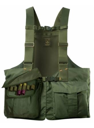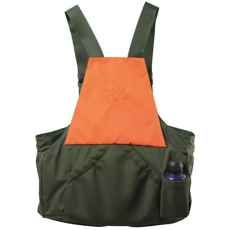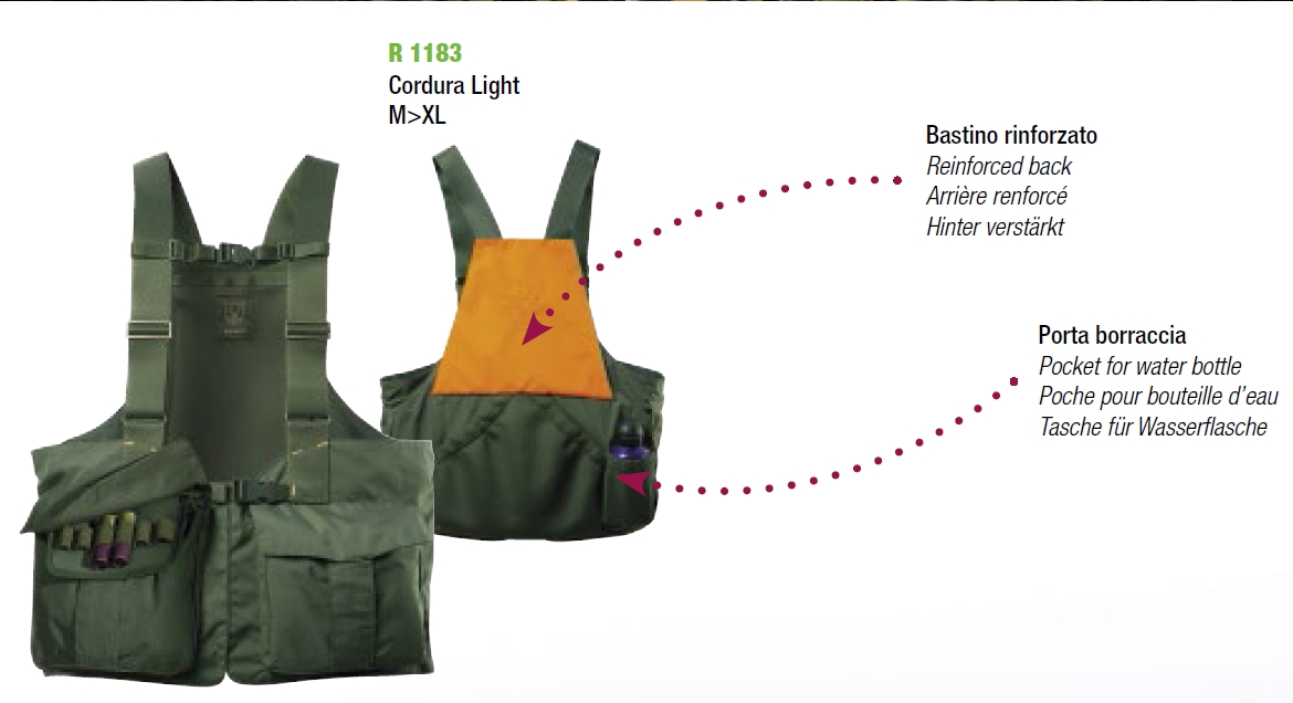 Diese super durchdachte, funktionelle Rucksackweste von RISERVA ist gefertigt aus dem superleichten Material "Cordura Light" und mit einem Netz-Rückenteil versehen, für möglichst optimalen Tragekomfort und Atmungsaktivität. Daneben kommt das ultraleichte Material natürlich auch dem Gewicht der Weste zugute, das deutlich verringert wird. Die praktische Pirsch-/Jagdweste von RISERVA verfügt über zwei grosse Balgtaschen an der Vorderseite (zB für Munition, Ausrüstung, Hundesnack oder ähnliches) und eine größere Wildbergetasche im Rücken. Details wie der herausnehmbare Multikaliber-Patronenenhalter unter der rechten Taschenpatte, Trinkflaschenhalter am rechten Rückenteil, stufenlos verstellbare Schultergurte und magnetisch fixierbare Signalfahne im Rücken machen wieder einmal deutlich, wie viel Jagd-Erfahrung und funktionelles Einfühlungsvermögen in die Konstruktion dieser einmaligen Outdoorweste gelegt wurde. Aufgrund der zwei verschiedene und individuell einstellbaren Brust- und Bauchriegel mit Schnellverschluss sitzt diese Rucksackweste von RISERVA nicht nur wie angegossen, sondern ist sie auch sehr einfach und schnell an- und abzulegen. Die Länge der Schultergurte sind stufenlos einstellbar und der signal-orangene Sicherheitseinsatz im Rücken ist bei Nichgebrauch einfach nach unten geklappt. Im Bedarfsfall ist dieser dann mit seinen eingearbeiteten Magneten im Handumdrehen und blitzschnell nach oben geklappt und gut sichtbar fixiert. Die Weste ist aufgrund ihrer gut aufeinander abgestimmten Materialzusammenstellung geräuscharm, witterungs- & temperaturbeständig, farbecht und sehr pflegeleicht. Der ideale Begleiter auf jeder Kleinwild-/Pirschjagd oder einfach zum Wandern mit dem Hund.