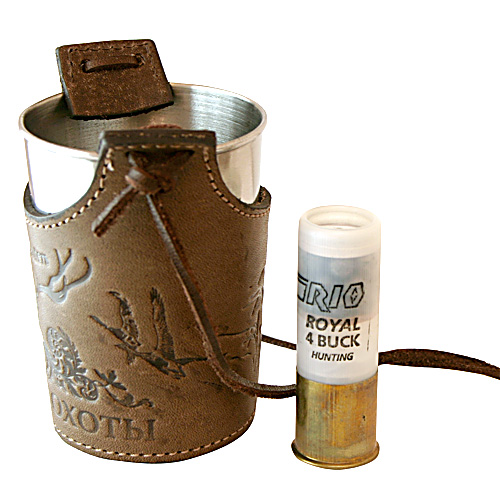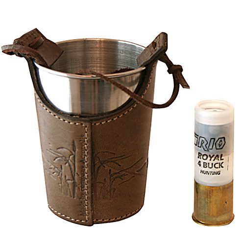 Trinkbecher - Edelstahl im Ledertrager - 170 ml - Acropolis - Artikel SHB-1