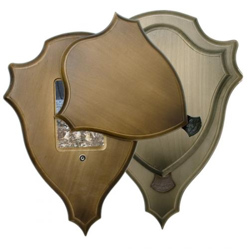 Unter der oberen, wegdrehbaren Deckelplatte kann ein Foto der Trophäe / des Jägers, eine Beschreibung des Ortes / der Jagd oder sonstige Informationen eingesetzt werden. Somit sind immer alle nötigen Daten und Informationen bzgl. der Trophäe an Ort und Stelle und kann direkt darauf zugegriffen werden.