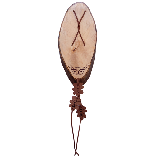 Das originelle, exklusive Design dieses Trophäenbretts unterstreicht die primäre Form der Trophäe. Nur das qualitativ bestes Holz und fachmännische Handarbeit bringen ein solches, hochwertiges Resultat zustande, welches die Trophäe selber noch um ein Vielfaches edler und anmutiger zur Geltung bringt, als herkömmlicheTrophäen-Brettchen.